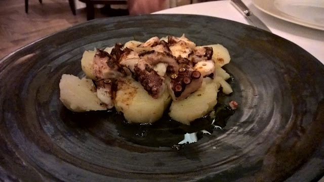 For starters we are served a sharing platter of Octopus A Feira and Mussels A la Marinera. The key to the first dish is the way that the octopus is cooked. By now I have come to expect octopus to be chewy, rubbery and uninteresting. It is usually part of a dish to give texture - up to now that is. I have never used the word 'tender' to describe octopus. But there is no other word more appropriate. Finally, the mussels have the most delicious broth and after finishing the mussels, my guest and I look at each other, smile, and dip some bread into the broth. That is a really appetising broth.