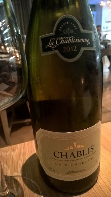 Meanwhile, my wine for the evening, a 2012 Chablis "La Pierrelée' La Chablisienne", is fresh and citrusy, making it a perfect complement for seafood. I particularly laud its long taste, allowing me to savour it. Memorable.